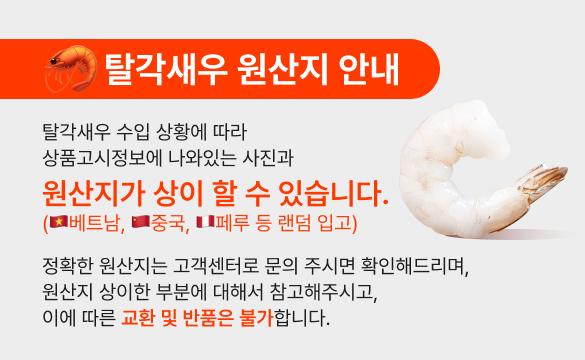 - 진공 포장된 제품은 배송 시 흔들림에 의해 진공 풀림 현상이 있을 수 있습니다. 제품 품질에는 전혀 이상이 없으므로 진공 풀림의 이유로 교환/반품/환불 되지 않으니 구매에 착오 없으시길 바랍니다.