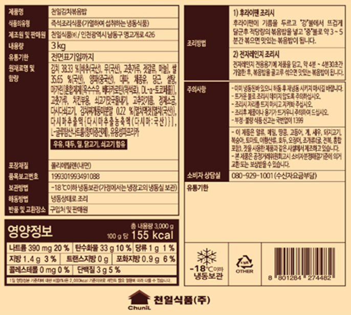 - - 파손의 우려가 있는 상품(곡류, 분말류, 조미분말류, 캔류, 유리류 등)의 경우 교환 및 환불의 제한이 있습니다. 교환 및 환불 여부는 고객센터 확인 부탁드립니다.