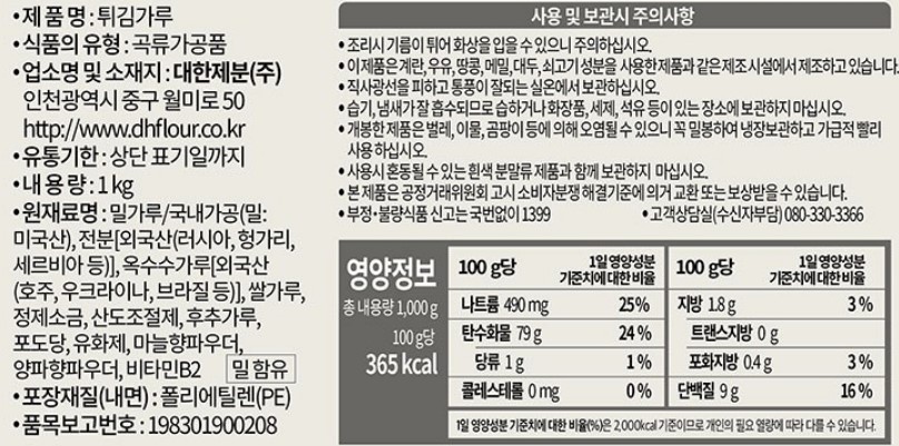 - - 파손의 우려가 있는 상품(곡류, 분말류, 조미분말류, 캔류, 유리류 등)의 경우 교환 및 환불의 제한이 있습니다. 교환 및 환불 여부는 고객센터 확인 부탁드립니다.