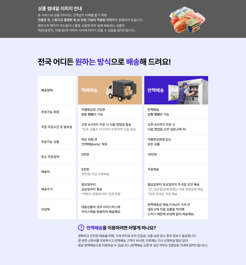- 차별화상회에는 2가지의 배송방법이 있습니다.