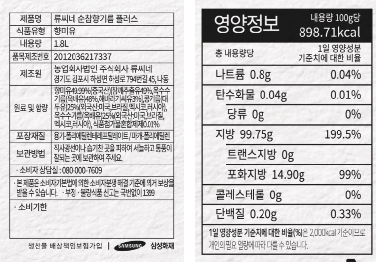 원재료명 및 함량