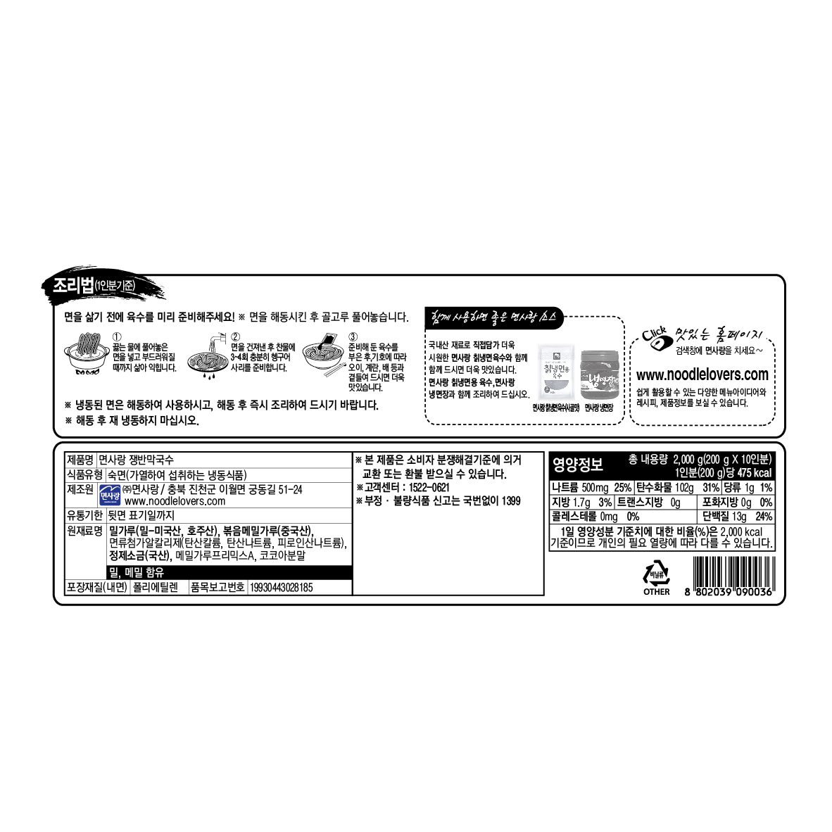 면사랑 냉동 쟁반막국수 2kg/PK