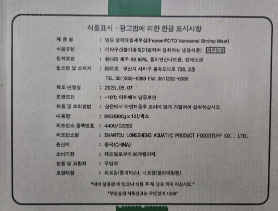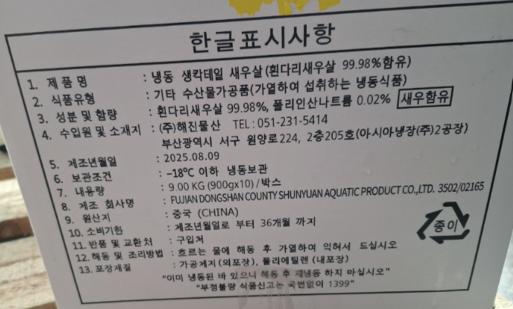 수입식품안전관리특별법에 따른 수입신고증 필함.