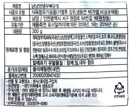 수입식품안전관리특별법에 따른 수입신고증 필함.