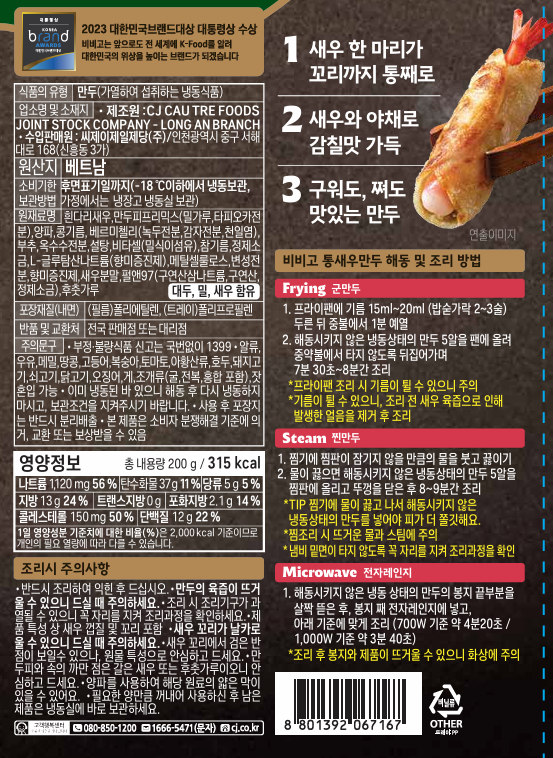 비비고 냉동 통새우만두 200g/EA