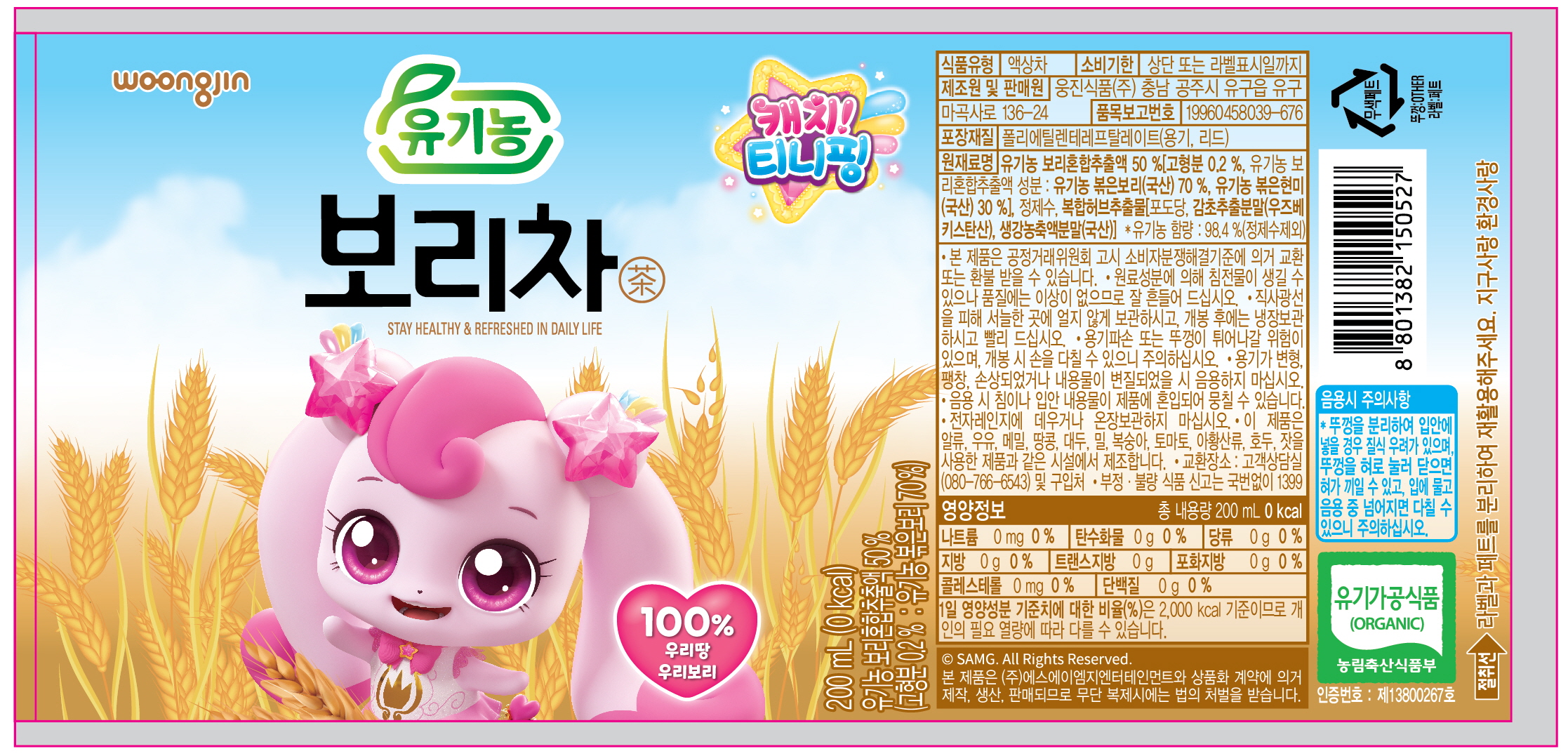 웅진 캐치티니핑 유기농보리차 200mlx24/box