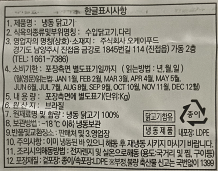 농수산물: 유전자변형 및 지리적 표시사항 - 상품 상세정보 및 이미지 참조 / 축산물: 등급표시 및 축산물 이력번호 - 상품 상세정보 및 이미지 참조, 이력관리 유,수입식품안전관리특별법에 따른 수입신고를 필함