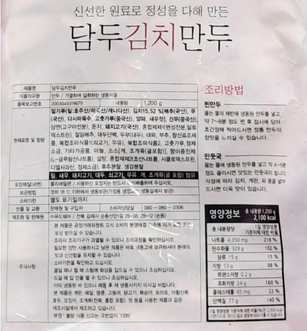 담두 냉동 김치손만두, 김치만두 1.2kg/PK